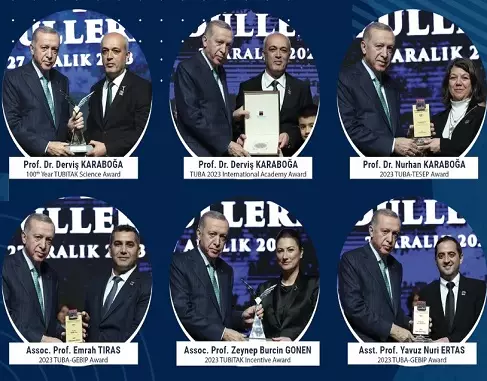 Prof. Dr. Derviş Karaboğa, a Faculty Member at the ERU Faculty of Engineering, was deemed worthy of 2 awards with his studies in the field of artificial intelligence including the 2023 Turkish Academy of Sciences (TUBA) International Academy Award, given to the scientists who become prominent with their unique, pioneering and groundbreaking projects, and 100th Year TUBITAK Science Award 2023 in the category of Engineering Sciences. He received his award from President Recep Tayyip Erdoğan.